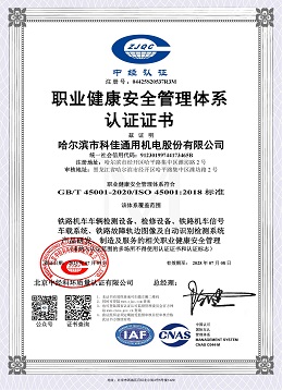 职业康健清静管理系统认证证书